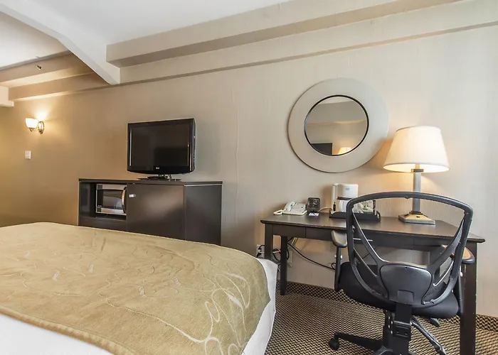The quality Comfort Suites Downtown Montreal is set at 500 metres of the multi - purpose Bell Centre Arena and within 10 minutes' walk of The Montreal Museum of Fine Arts. This 3-star pet-friendly inn offers place to stay with WiFi in the rooms.